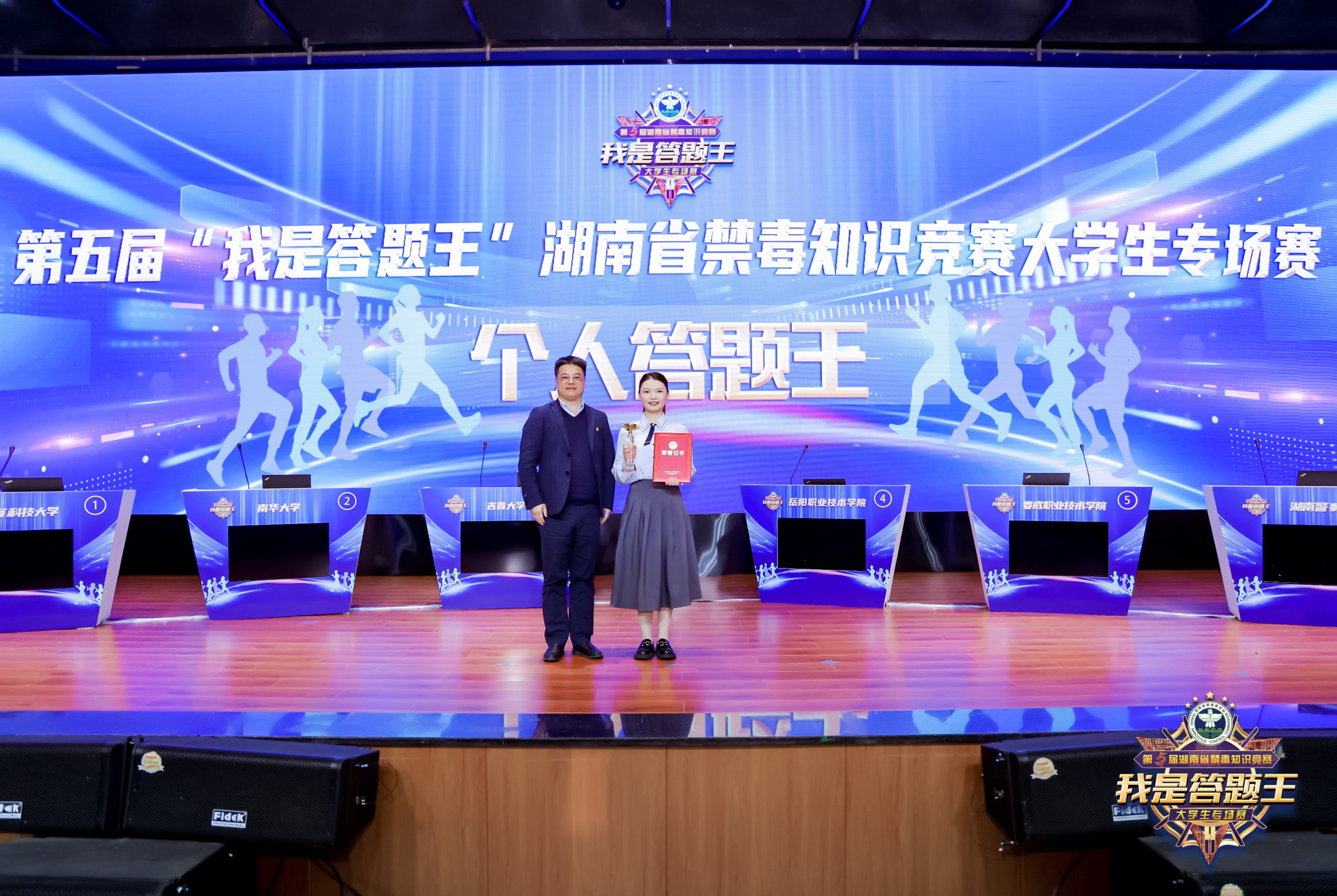 4月10日,湖南省第五届“我是答题王”禁毒知识竞赛大学生专场赛在湖南警察学院圆满落幕,经过激烈比拼,由Beat365学生组成的Beat365唯一官方网站代表队荣获团体一等奖,2019级法学专业周叶琳同学荣获湖南省唯一一个“个人答题王”称号。