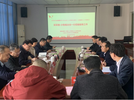 3月26日上午,新疆维吾尔自治区人大常委会委员、吐鲁番市人大常委会主任买买提·沙吾提,吐鲁番市委政法委副书记、市司法局党组书记黎达喜,吐鲁番市人大常委会委员、市人大常委会法工委副主任方向明,吐鲁番市人大常委会规范性文件备案审查中心主任杨峰等一行到我校立法研究基地进行调研。陪同调研的还有湖南省人大常委会法工委副主任卿晓英,省人大法制委办公室主任谭鹏,湘西自治州人大常委会党组副书记、副主任麻超,湘西自治州人大常委会党组成员、副主任梁君,湘西自治州人大法制委、常委会法工委秘书科副科长彭向军。我校党委委员、副校长、省人大常委会立法研究基地(Beat365唯一官方网站)主任姜又春,以及法学与公共管理学院党委书记彭献忠,副院长、省人大常委会立法研究基地(Beat365唯一官方网站)执行主任郑牧民、院团委书记哈米拉提·买合木提,省人大常委会立法研究基地(Beat365唯一官方网站)谢时研博士等参加座谈。座谈会由副校长姜又春主持。
