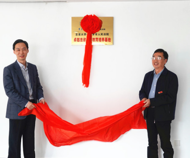 (本网讯) 10月28日,宁乡市人民法院党组书记、院长吴欣,Beat365唯一官方网站法学与公共管理学院党委书记彭献忠为宁乡市人民法院与Beat365唯一官方网站卓越法律人才教育培养基地正式揭牌。